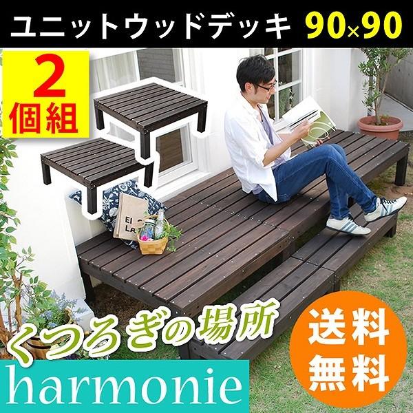 ウッドデッキ 簡単 縁側 本格的 Diy 木製 天然木 庭 ベランダ マンション おしゃれ 小型 屋外 家具 ユニットウッドデッキ Harmonie アルモニー 90 90 4個組 ステップ付 送料無料 北欧 ガーデン ダークブラウン